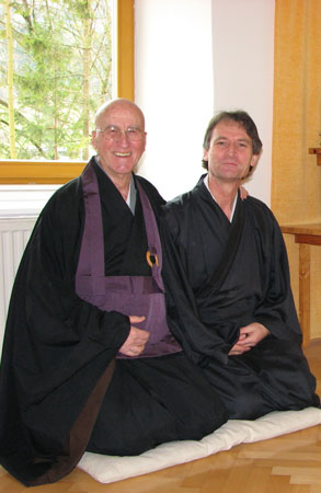 zu 2 Runden Zazen (Meditation), Kinhin (Gehmeditation) und Rezitation.